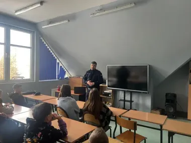 Funkcjonariusze wyjaśnili, jakie zachowania mogą prowadzić do odpowiedzialności i jakie konsekwencje przynoszą przekroczenia prawa. Istotnym elementem prelekcji były zagrożenia z Internetu, w tym problem hejtu wśród młodzieży szkolnej. Spotkanie miało charakter edukacyjny i interaktywny - uczniowie aktywnie uczestniczyli w zajęciach i dzielili się spostrzeżeniami.