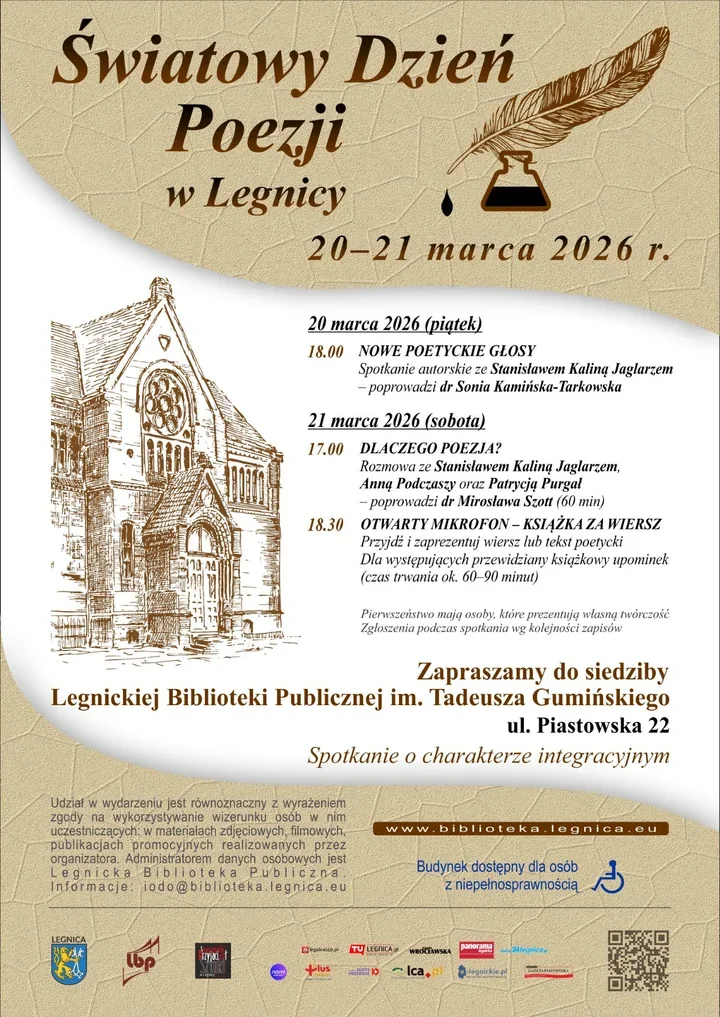 - 21 marca 2026 - 17:00 | DLACZEGO POEZJA? - panel z udziałem Stanisława Kaliny Jaglarza, Anny Podczaszy i Patrycji Purgał - prowadzi dr Mirosława Szott.