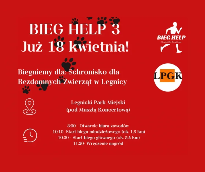 W Parku Miejskim w Legnicy znów zaczyna się ruch, który łączy sport i pomoc. Trwają zapisy na 3. Legnicki Bieg Charytatywny „BIEG HELP”, zaplanowany na 18 kwietnia 2026 r., a cały wysiłek na trasie ma przełożyć się na wsparcie Schroniska dla Bezdomnych Zwierząt w Legnicy. To przedsięwzięcie nie wyrasta z biurowego planu, lecz z energii młodzieży, która postanowiła zrobić coś konkretnego dla miasta i jego zwierząt.